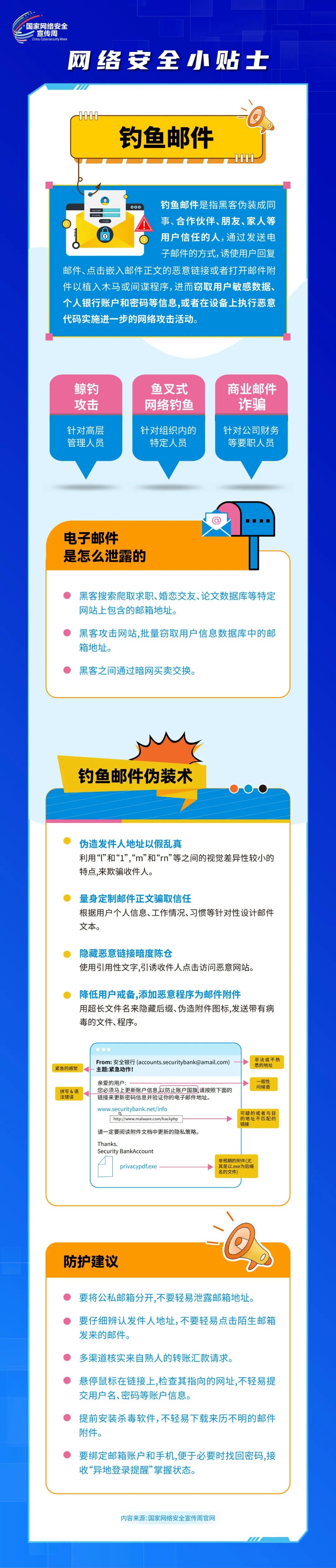 互联网给我们带来便利的同时也随之产生一系列网络乱象,电信诈骗、钓鱼邮件、数据泄露等让人真假难辨、防不胜防。让我们通过一组海报,一起学习网络安全知识,筑牢网络安全防线。